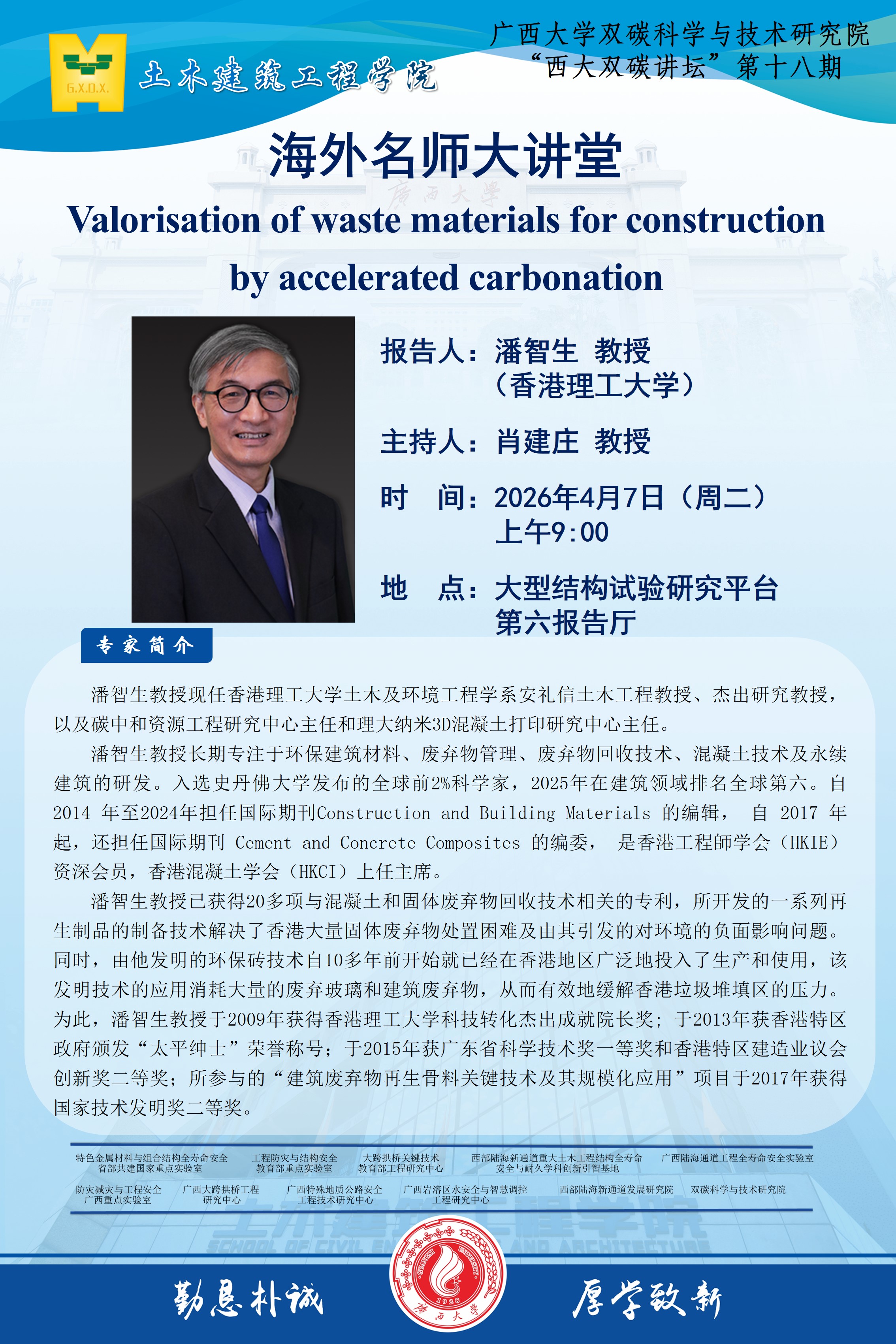 Overseas Masters Forum:Valorisation of waste materials for construction by accelerated carbonation