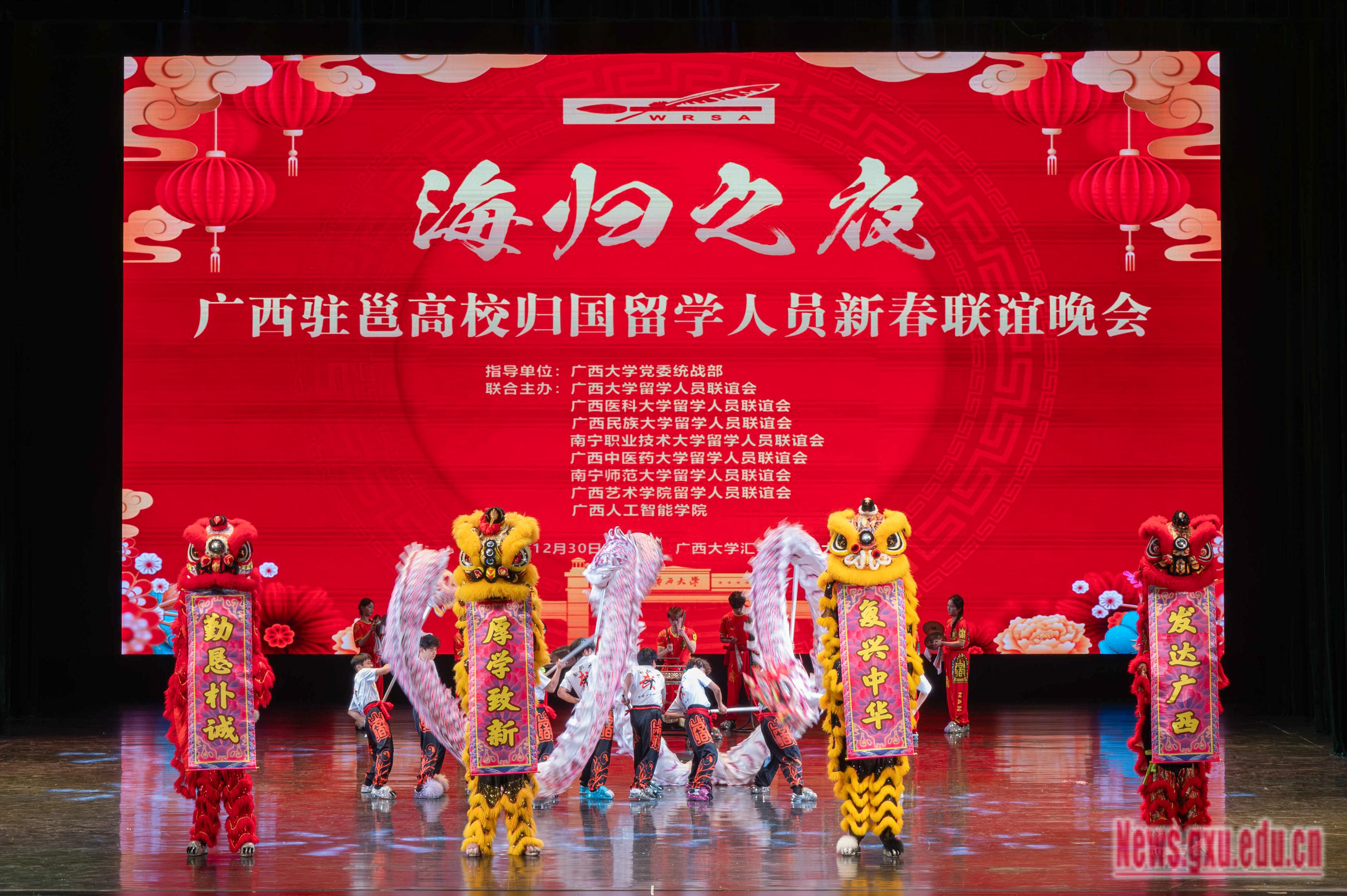 Đêm giao lưu năm mới của cán bộ, trí thức du học trở về từ các trường đại học đóng tại Nam Ninh năm 2025 đã được tổ chức vào ngày 30 tháng 12 tại Hội trường Huixuetang, Đại Học Quảng Tây. Bà Đặng Quyên Quyên, Phó Giám đốc Ủy ban Dân tộc và Tôn giáo Khu tự trị Dân tộc Choang Quảng Tây, đã tham dự sự kiện. Cùng tham dự còn có ông Tiêu Kiến Trang, Hiệu trưởng Đại Học Quảng Tây; ông Giản Hưng Siêu, Bí thư Đảng ủy Trường Đại học Kỹ thuật Nghề nghiệp Nam Ninh; ông Ninh Húc Sơ, Phó Bí thư Đảng ủy Đại Học Quảng Tây; và ông Phùng Gia Huân, Chủ tịch Hội Liên hiệp Du học sinh trở về của Đại Học Quảng Tây, đồng thời cùng tham gia các hoạt động trong chương trình.