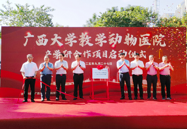 9月27日上午,广西大学在动物科技大楼举办教学动物医院产学研合作项目启动仪式。