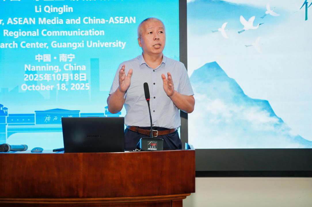 广西大学东盟传媒与中国—东盟区域传播研究中心主任李庆林作题为《人工智能时代讲好东南亚故事的机遇和挑战》的报告。他以自身的经历,分享了对东南亚的记忆,回顾了中国—东盟的友谊历史和传播案例。他提出了人工智能等新传播技术在叙事方面的助力与隐忧,希望借助新传播技术,在新时代讲好东南亚故事。