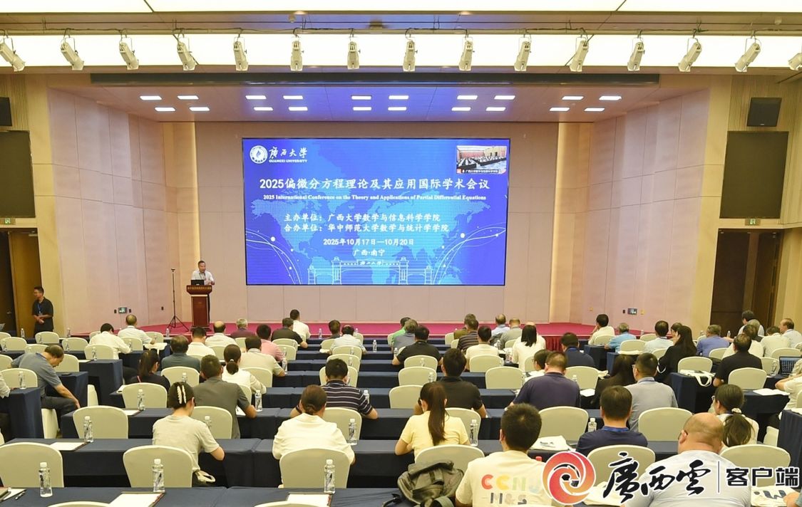 10月18日至20日,由广西大学数学与信息科学学院主办,华中师范大学数学与统计学学院合办的2025偏微分方程理论及其应用国际学术会议在南宁举行。来自国内外47所高校的130余名专家、学者齐聚一堂,围绕偏微分方程相关领域的前沿问题与发展趋势展开深度研讨,为推动该领域研究迈向新高度凝聚智慧与力量。