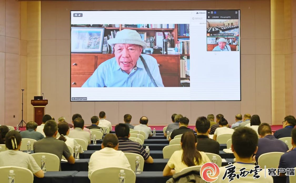 开幕式由本次会议组委会主任、广西大学数学与信息科学学院院长郭真华教授担任主持,合办单位华中师范大学郭玉劲教授致欢迎辞。会议学术委员会主席、著名数学家、香港中文大学辛周平教授,中国科学院院士、北京应用物理与计算数学研究所江松教授线上参会并发表致辞。