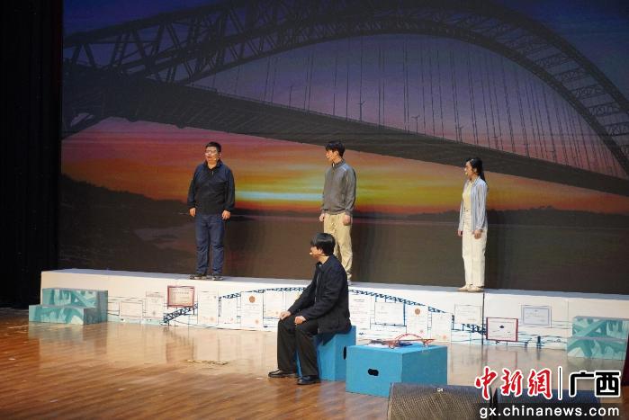 参与活动的师生在大学生活动中心小剧场沉浸式观看了科学家精神优秀剧目展演。演员们以情景再现的形式,演绎了郑皆连院士在艰苦环境中攻坚克难建造平南三桥以及坚守育人初心、行为师范的感人故事。
