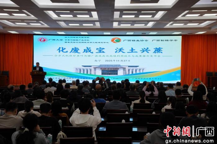发布会重点推介了广西大学绿色制糖团队在“十四五”广西糖料蔗科技重大专项——“甘蔗副产物高值化产品关键技术研究与应用示范”中取得的成果。糖业及综合利用教育部工程研究中心主任李凯介绍,团队以糖业亚法滤泥、蔗髓和糖厂废水为原料,通过微生物高效转化技术,成功研制出有机固肥和生物有机液肥。