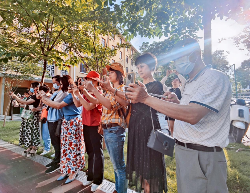 广西大学女工委手机摄影培训班组织学员进行实地摄影采风。