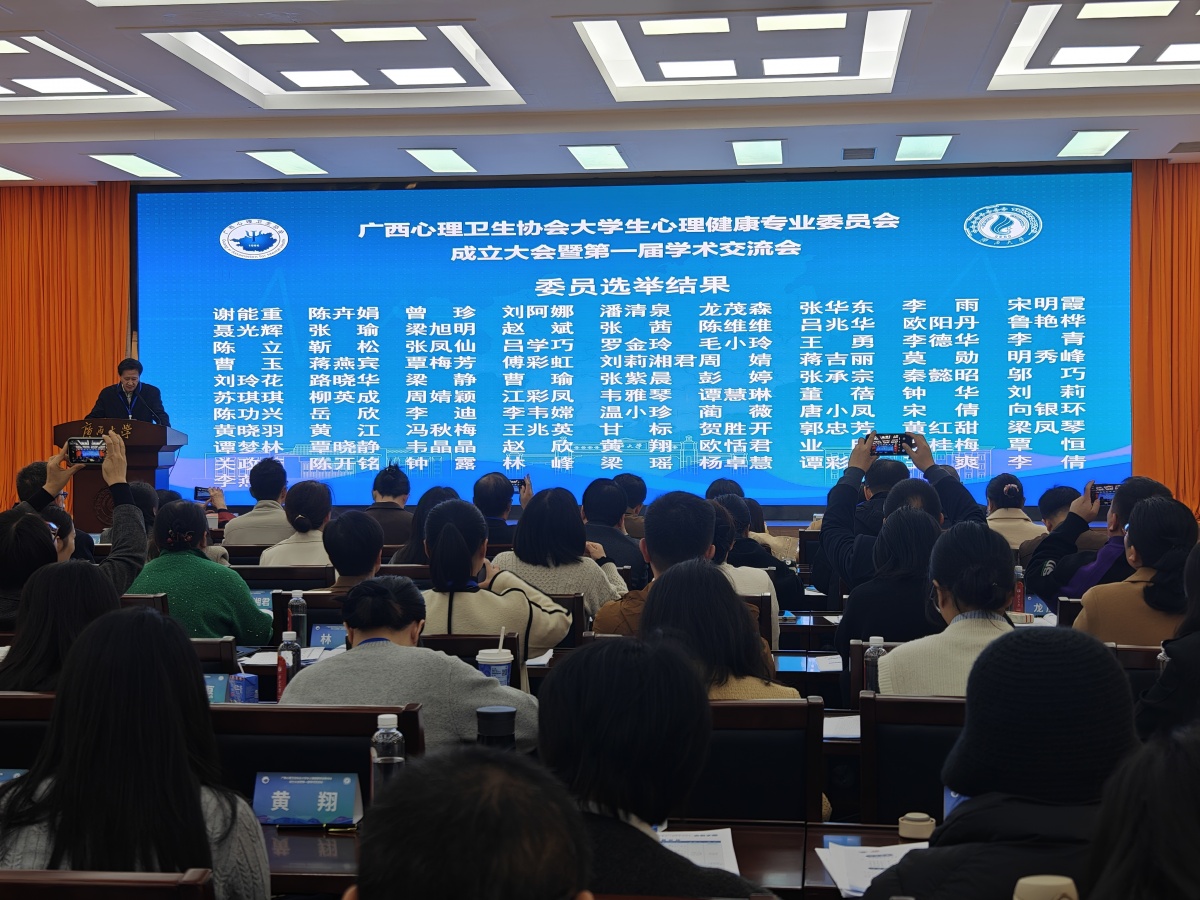 12月5日,广西心理卫生协会大学生心理健康专业委员会(以下简称“大专委”)在广西大学正式成立,标志着广西高校心理健康工作迈入“规范化运作、协同化推进、特色化突破”的新阶段。当天,来自全区76所高校的91名委员代表参会,大专委将重点破解数字时代大学生心理健康服务面临的新挑战。