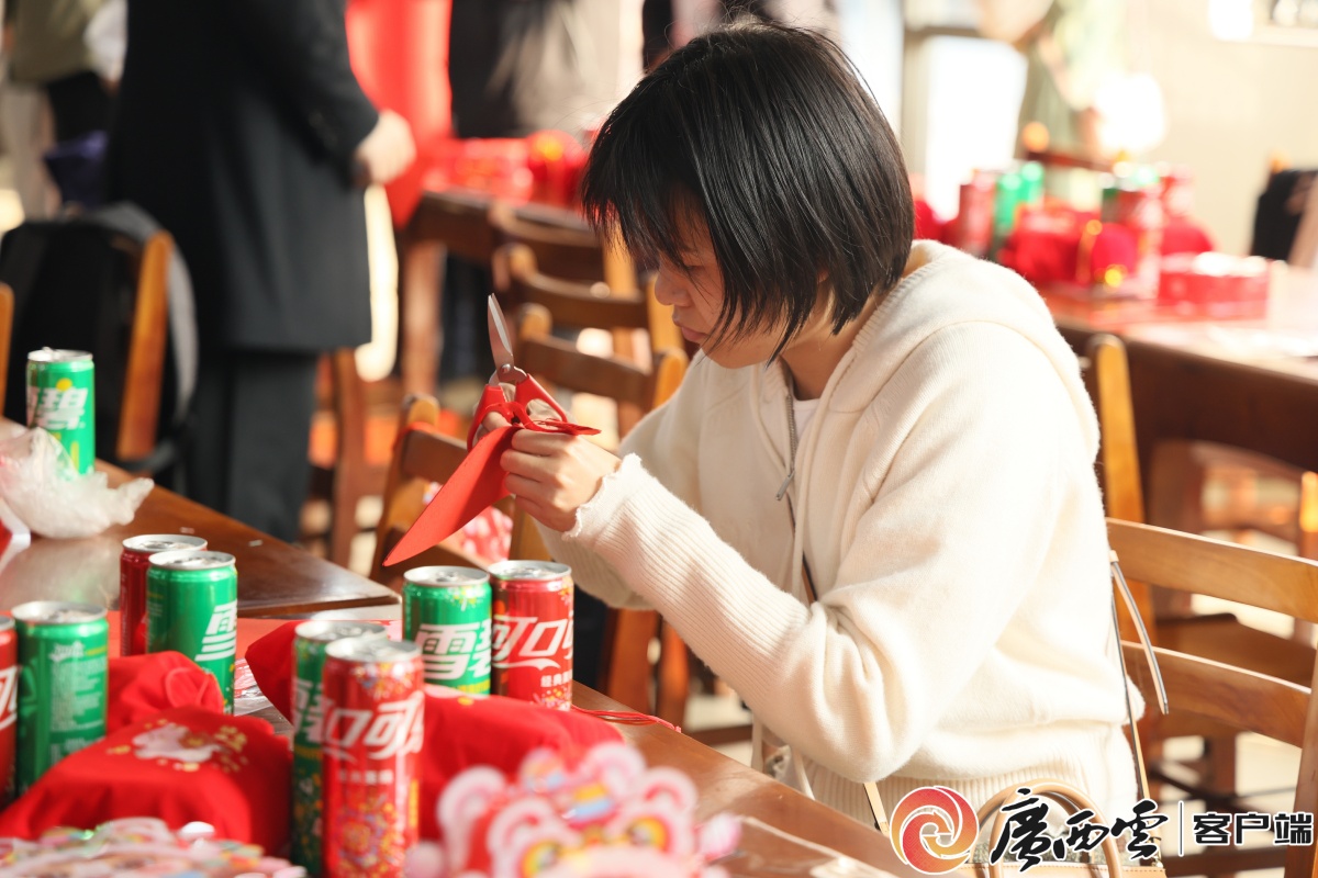 师生们在剪窗花、写“福”字。记者顾醒航 摄