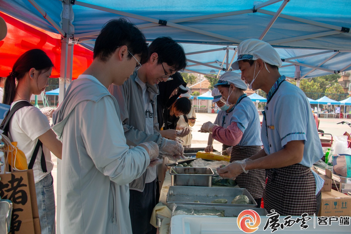 活动现场同步开展了丰富多样的民族体育游园项目。射箭、高脚马、高杆投绣球、滚铁环、背篓接绣球、打陀螺、板鞋竞速、冰壶、和球等传统项目依次展开,同学们或组队协作,或独立挑战,参与热情高涨。民族美食体验区同样人气十足,五色糯米饭、艾粑、糍粑等特色美食香气四溢,不少师生现场参与制作,亲身体验传统美食工艺。