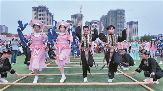4月11日,在广西大学第十二届“三月三”铸牢中华民族共同体意识民族文化节系列活动上,百人齐舞与舞龙舞狮点燃全场气氛,射箭、板鞋竞速等项目前围满了跃跃欲试的学生。4月14日下午,南宁职业技术大学2026年“三月三 趣广西”暨铸牢中华民族共同体意识主题宣传活动现场,师生们踊跃参与歌舞表演、体育竞技、非遗体验、风情展示等活动。依托“三月三”持续开展民族团结主题活动,已成为该校文化育人特色品牌。在柳州,广西科技大学第八届校园民族文化活动如约而至,师生共同打油茶、做艾叶粑,各路山歌高手齐聚现场,以歌会友、以声竞技。