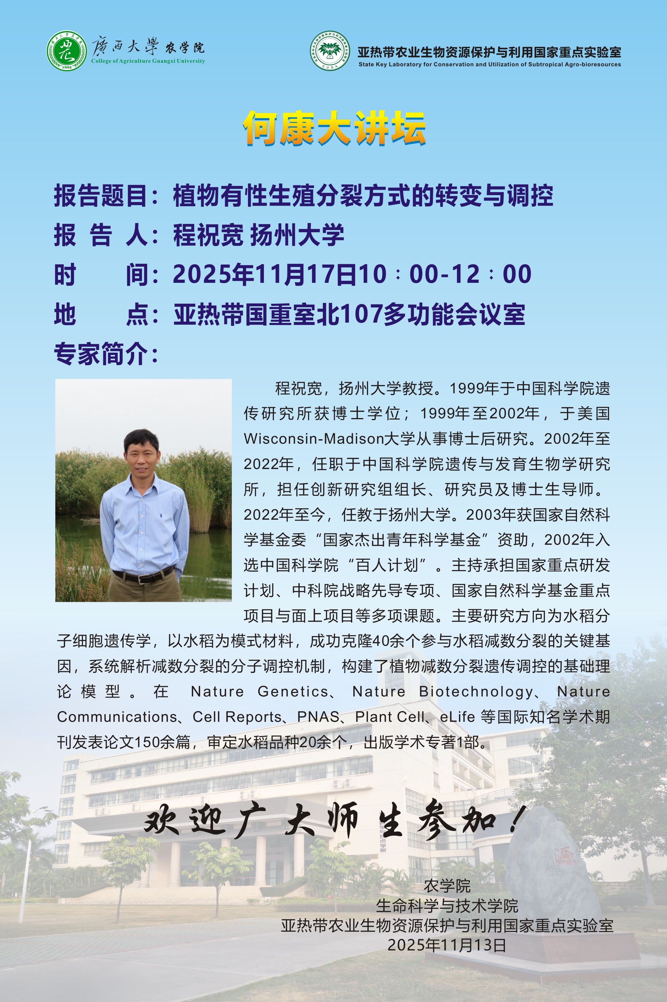 何康大讲坛:植物有性生殖分裂方式的转变与调控