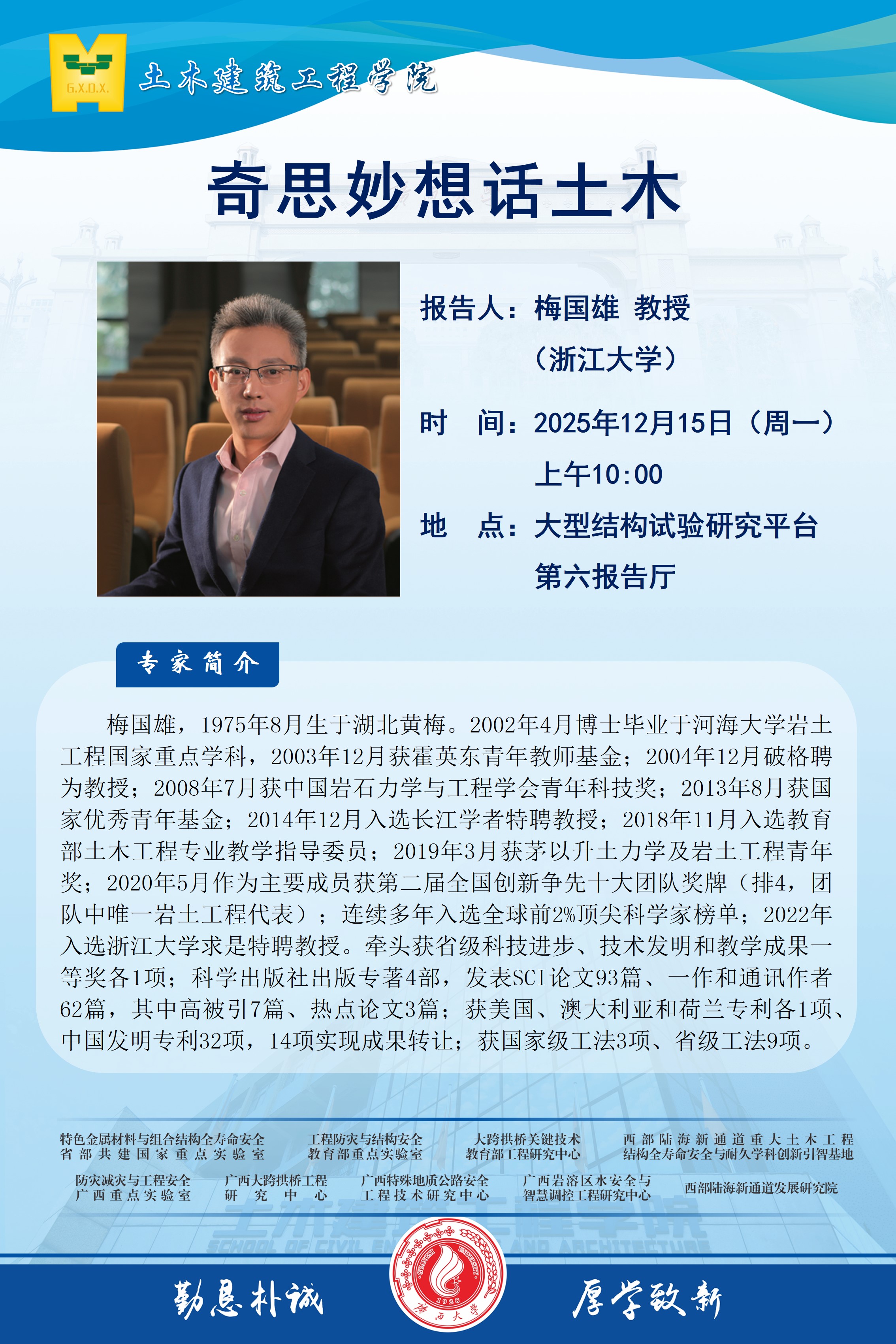 主讲人 梅国雄 教授 地址 大型结构试验研究平台第六报告厅