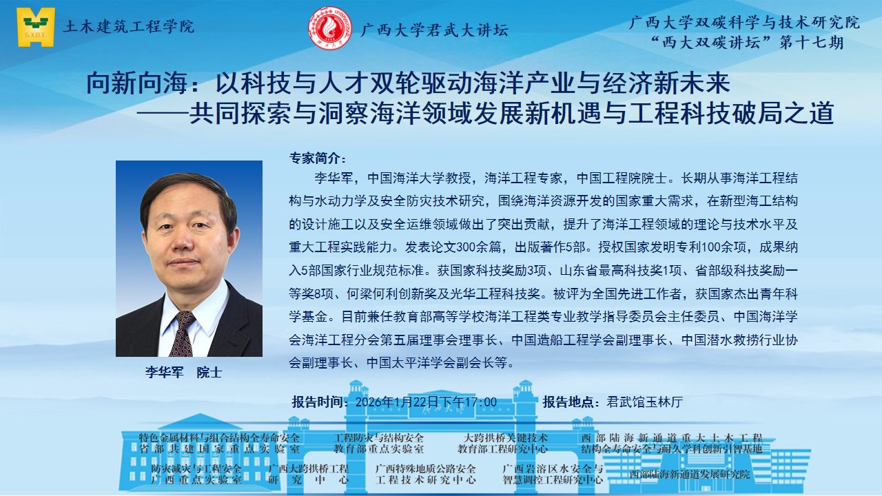 君武大讲坛、土木建筑工程学院学术报告:向新向海:以科技与人才双轮驱动海洋产业与经济新未来 ——共同探索与洞察海洋领域发展新机遇与工程科技破局之道