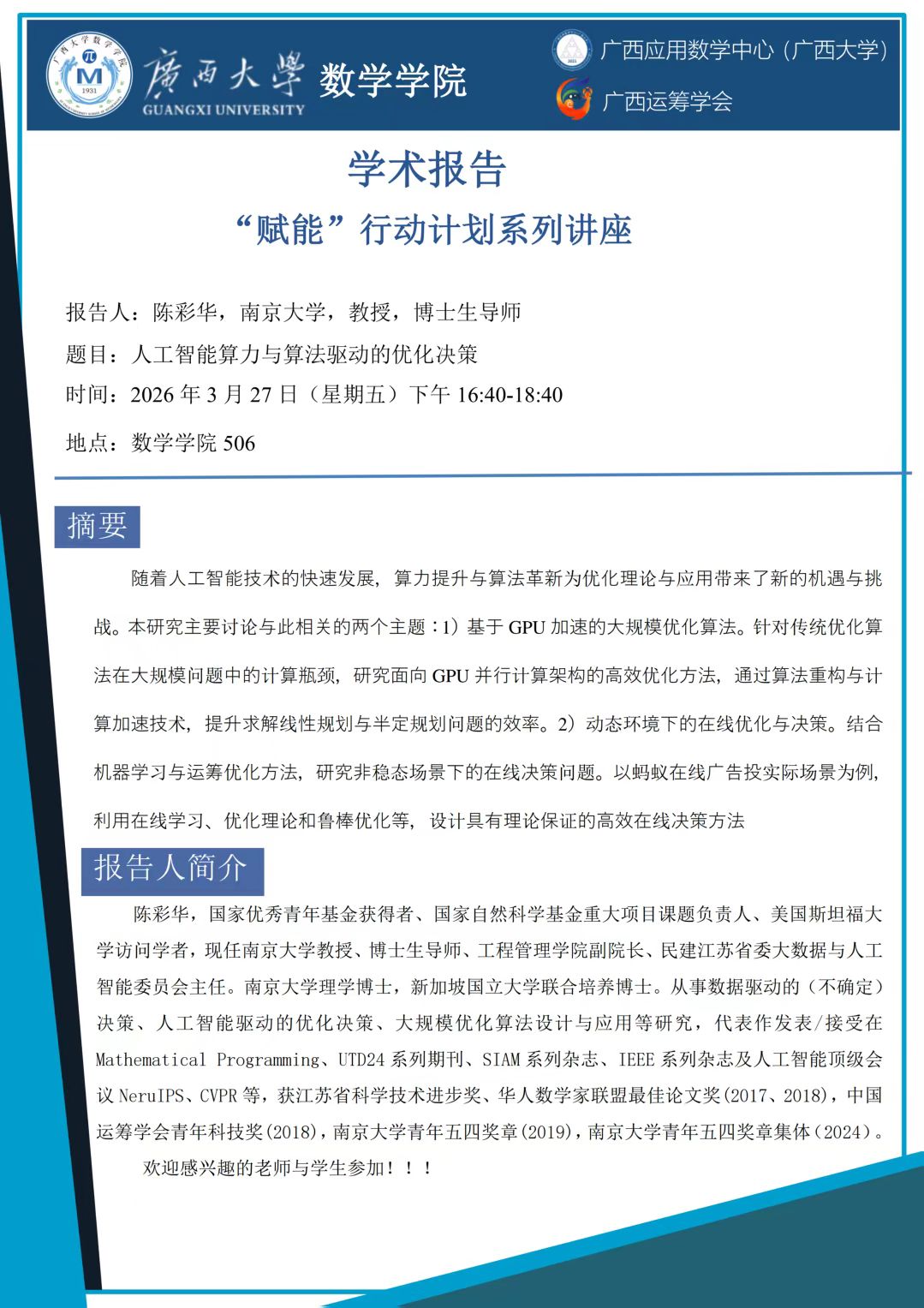 数学学院学术报告:人工智能算力与算法驱动的优化决策