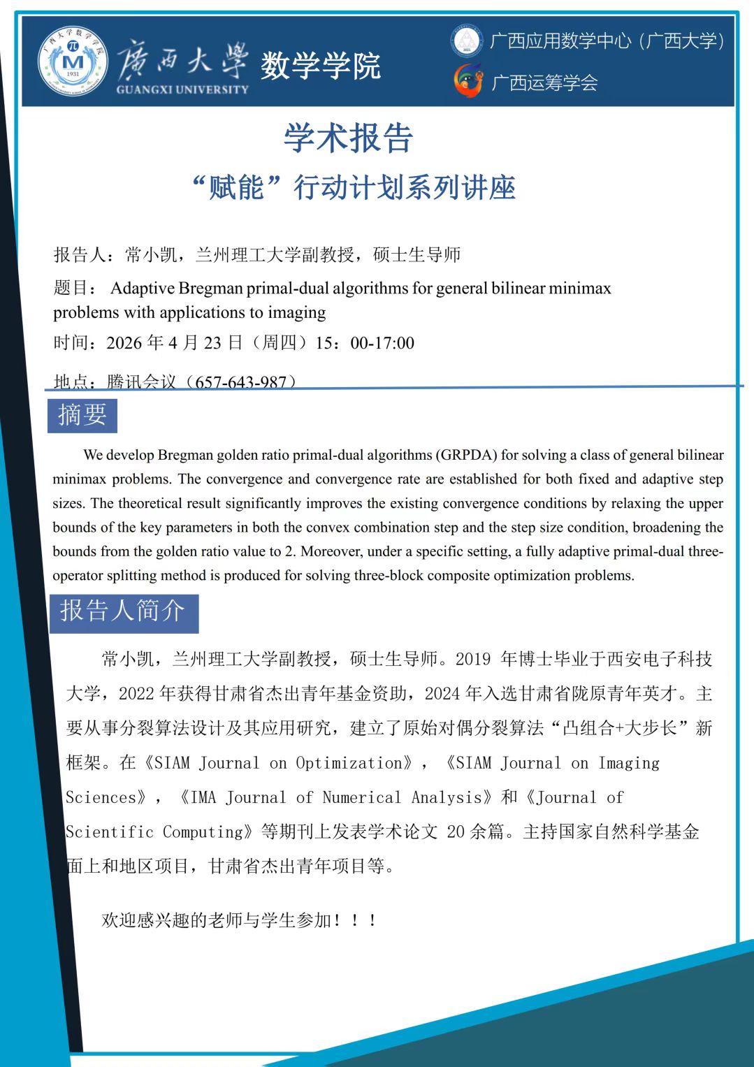 数学学院学术报告:Adaptive Bregman primal-dual algorithms for general bilinear minimax problems with applications to imaging