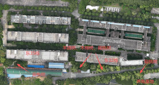 二、位于北校园学生公寓东32栋南面铁艺围墙内6株羊蹄树,2株木棉树和4株扁桃树。